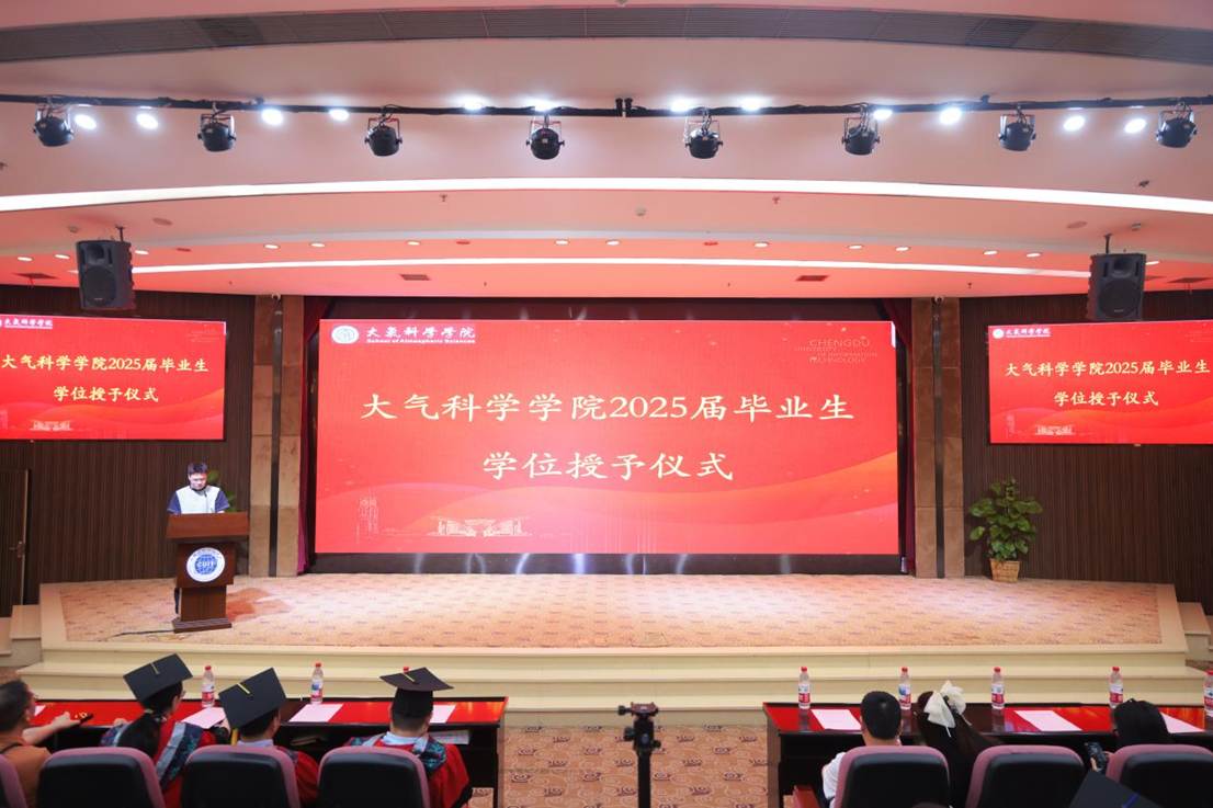 6月26日9:00,大气科学学院2025届毕业生学位授位仪式在航空港校区国际会议厅顺利举行。大气科学学院党委书记张宇、院长华维、副院长曾胜兰、教师代表、家长代表及2025届全体毕业生参加仪式。活动由本科毕业班辅导员张泽昊主持。