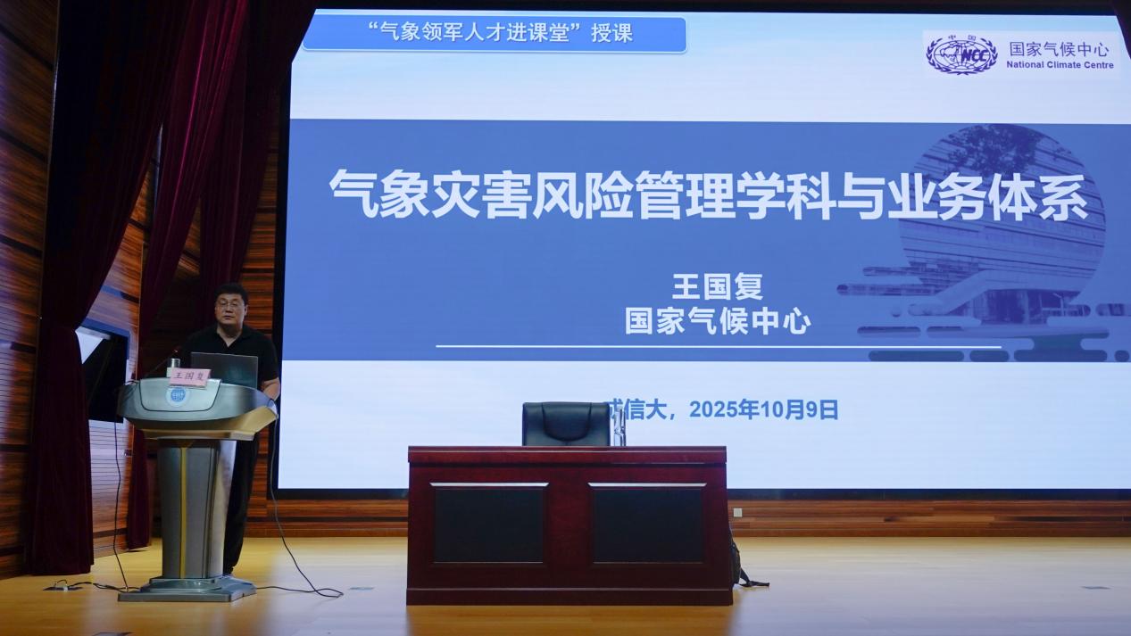 王国复长期深耕细作灾害风险管理、业务系统建设等领域,拥有深厚的学术造诣和丰富的实践经验。在本次课程中,王国复研究员结合大量气象防灾减灾的实际案例,从学科内涵到技术应用,从风险形势到应对策略,进行了全方位的剖析。他以通俗易懂的语言,将复杂的气象灾害风险管理知识娓娓道来,让在场学生们对气象防灾减灾的重要性及技术发展有了更为深刻的认识。