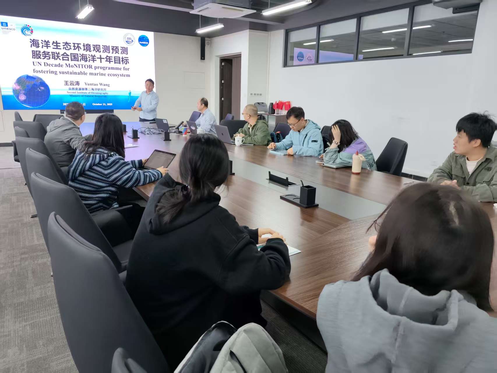2025年10月21日上午,自然资源部第二海洋研究所国际合作中心主任王云涛研究员、普林斯顿大学/ NOAA-GFDL李首位博士在新气象楼807会议室分别作了题为《海洋生态环境预测服务联合国海洋十年目标》、《外强迫因子影响下全球热能和海洋环流变化》的学术报告,本次报告全程由大气科学学院党委书记张宇教授主持,大气科学学院闫燕副教授等部分师生参加了现场报告和学术交流。