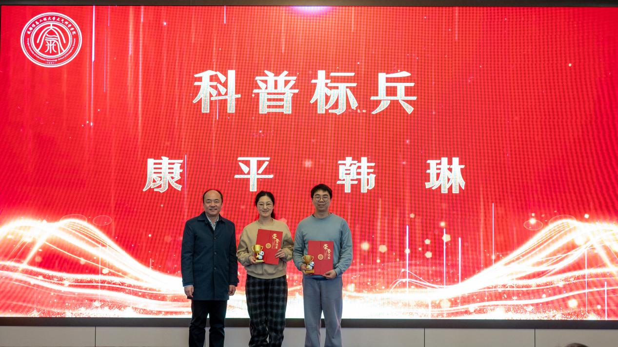 述职环节结束后,学院举行了2025年度表彰仪式。学院领导班子为荣获年度“突出贡献奖”“科普标兵”“科技标兵”“教学标兵”“卓越服务奖”“优秀班主任”等荣誉的教职工颁发荣誉证书,以表彰先进、树立榜样,激励全体教职工以更加饱满的热情投身学院发展。