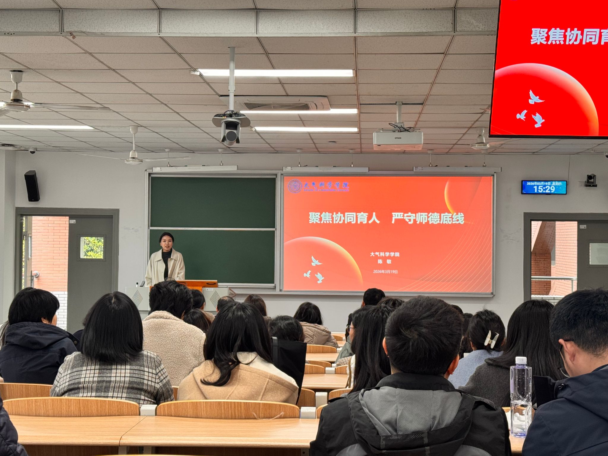 2026年3月19日下午,大气科学学院2026年春季学期第一次全体教职工大会在教学楼1209召开,会议由学院党委副书记、院长华维主持,学院全体教职工参加此次会议。