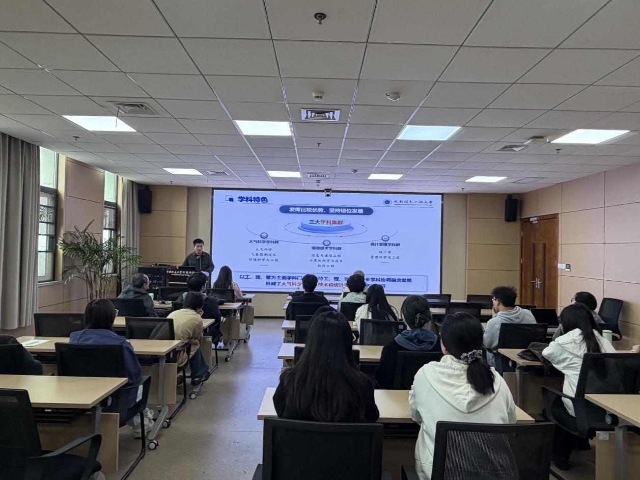 宣讲会上,学院教师围绕学校概况、学科发展及博士生导师队伍等方面进行了系统介绍,详细阐述了成都信息工程大学在大气科学领域的学科优势、科研平台建设情况以及导师团队的研究方向与特色,帮助在场学生全面了解我校博士研究生的培养体系与学术资源。