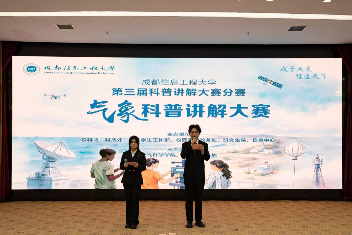 4月9日晚,由学校科学技术协会、党委学生工作部、教务处、研究生院、科技处、校团委、信息中心联合主办,大气科学学院与学校气象科普基地承办的成都信息工程大学第三届科普讲解大赛分赛暨第七届气象科普讲解大赛决赛在学校国际会议厅顺利举行。经过前期校赛选拔,来自两校区的25位选手脱颖而出,晋级决赛。
