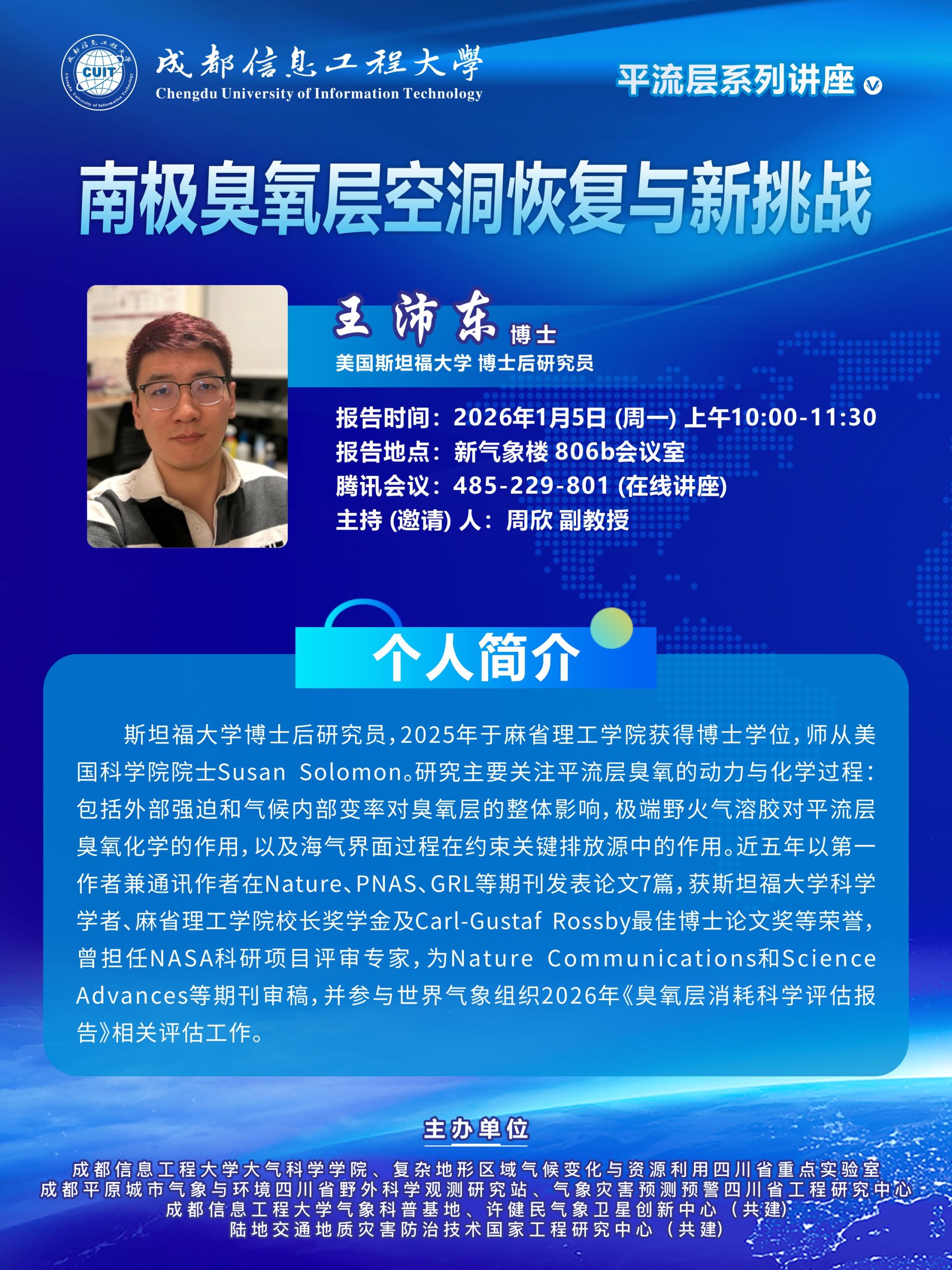 【学术讲座预告】南极臭氧层空洞恢复与新挑战