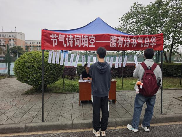 现场还设置了充满中华优秀传统文化韵味的环节。“节气养生茶歇”区结合节气特点提供养生茶饮,让师生在休憩中感受节气与气象的联结。“节气诗词填空”活动通过抽取诗词卡片、填出关键词,让参与者在品味古诗词的同时加深对传统文化的理解。
